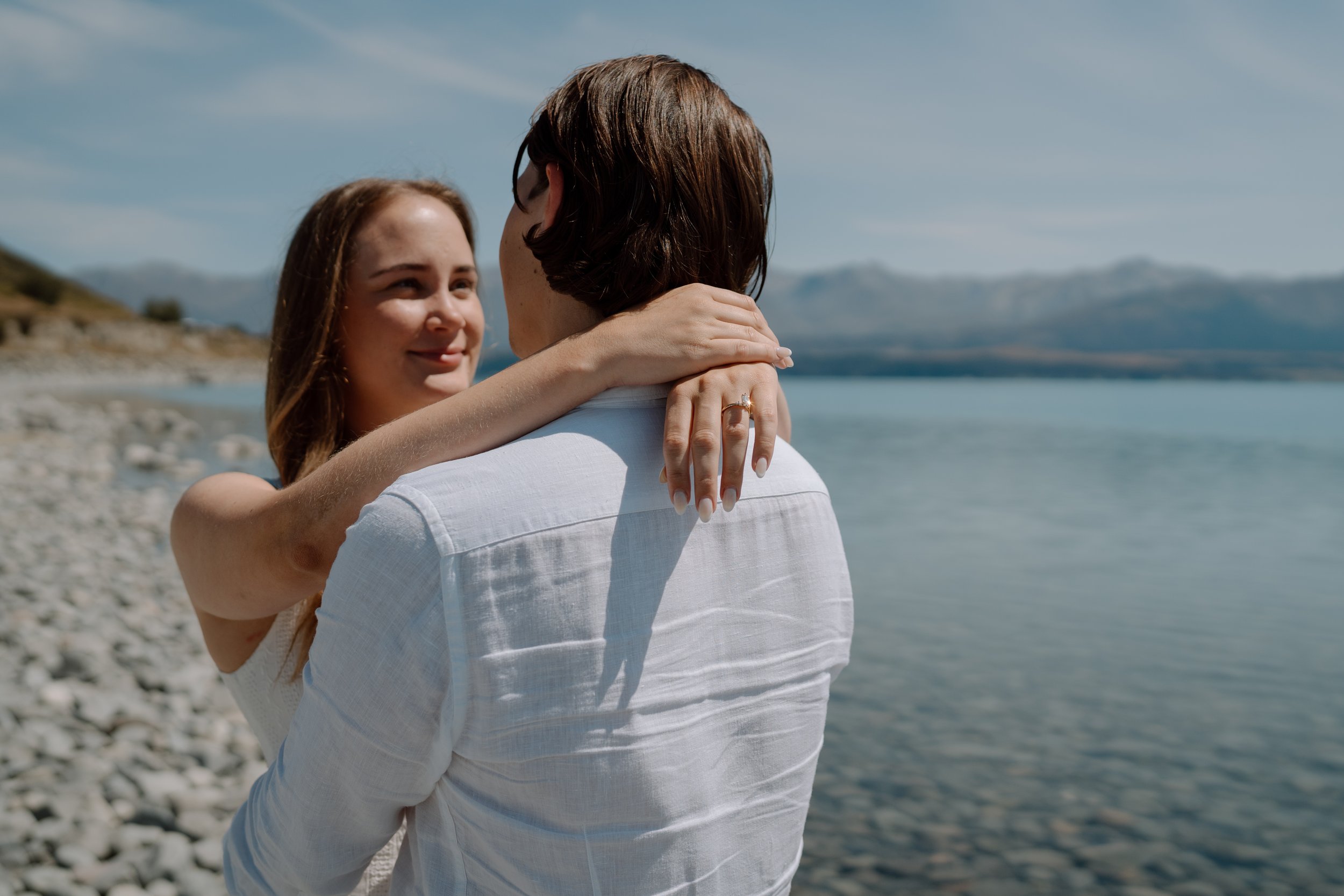 This surprise proposal for Lizette and Richard’s overlooking the turquoise waters of Lake Pukaki, with the majestic Mount Cook/Aoraki in the background, was the definition of a picture-perfect moment. Set against one of the most iconic backdrops in New Zealand, this emotional and joy-filled proposal was captured through both professional photography and proposal video content creation — perfect for reliving and sharing the moment with loved ones.